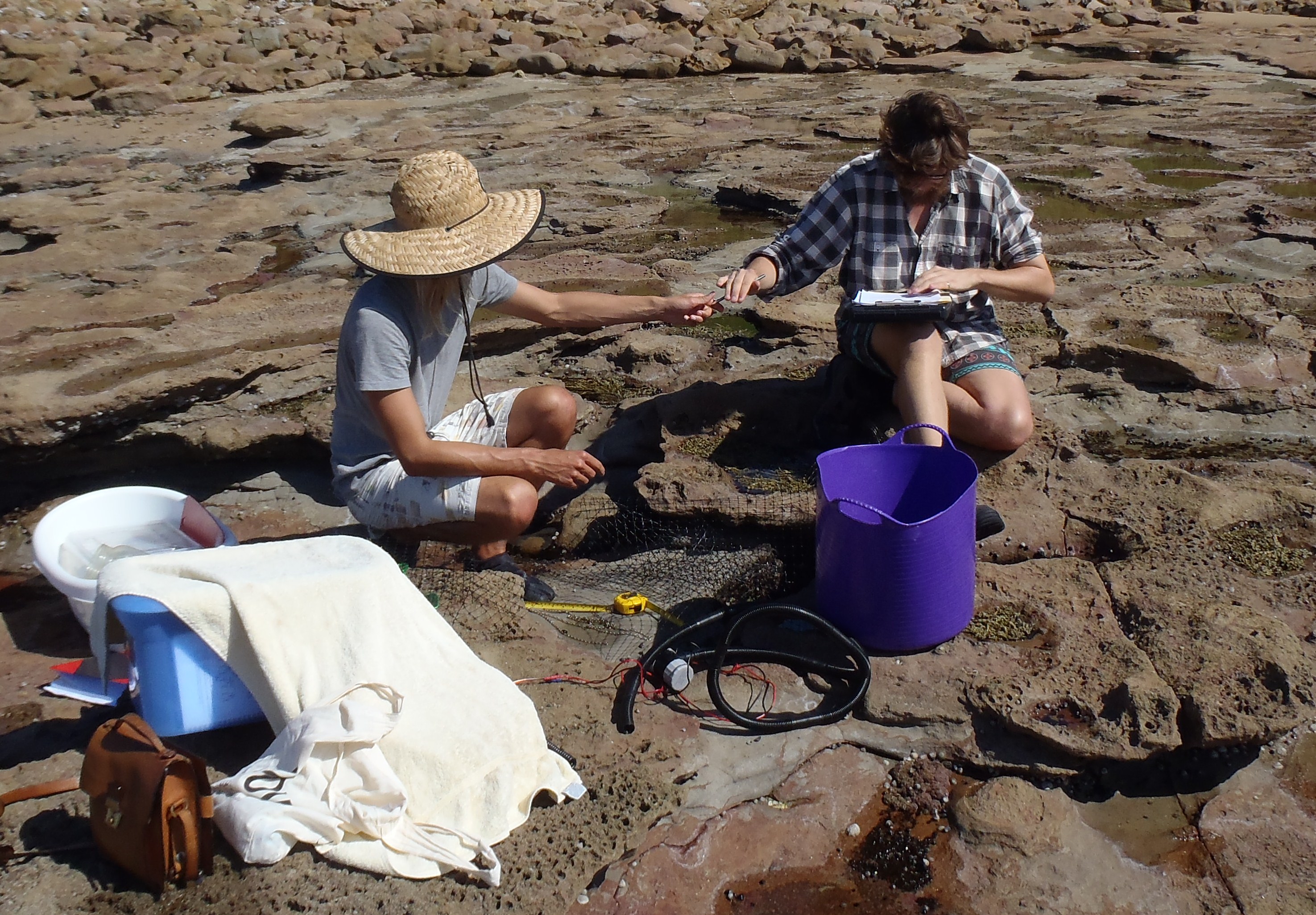 Kye, a marine science student at UOW, is investigating the microsite drivers of algal diversity on rocky shores. Across the globe, the between-shore (e.g. wave exposure, substrate type) and landscape-scale (e.g. currents, latitude) drivers of algal diversity are well-known. However, at any given site, it is unknown what maintains the diversity of the algal community. Research by Underwood, Keough and the like have shown that top-down biotic effects (e.g. grazing) are important, but the role of abiotic attributes of rockpools (e.g. pool size, substrate rugosity, depth) or the location of such pools on the shore (e.g. elevation) remains unexplored.???????????????????????????????